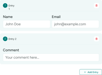 With Repeater Addon users dynamically add or remove repeated form fields (like team members, products, or entries)