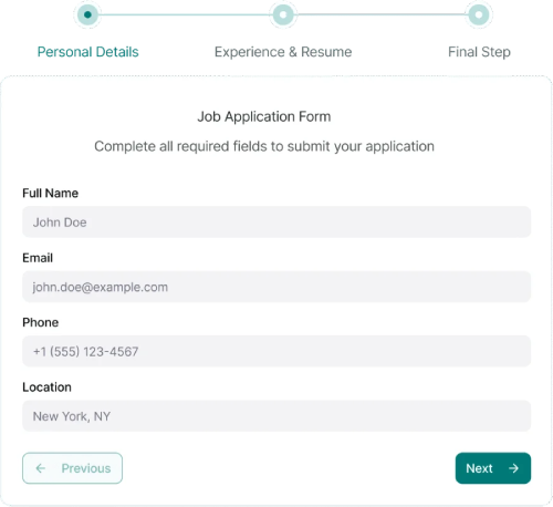 Long forms can often overwhelm users, but not anymore. The Multistep Form Addon helps you break down lengthy forms into smaller, more digestible steps or pages. Each step can have its own title and progress indicator, making the process smooth and engaging. This results in higher completion rates and a better experience — especially for surveys, registrations, and multi-section applications.