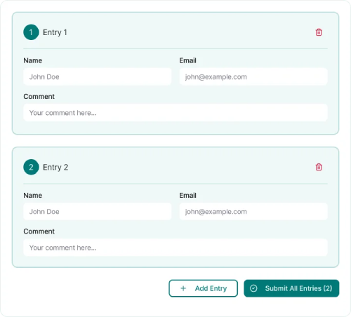 Need users to add multiple entries dynamically? The Repeater Field Addon lets them add or remove repeating field groups on the fly — without reloading the form. Perfect for registration forms, group bookings, or product orders, this feature makes it easy to collect structured data. It also ensures your forms remain clean and user-friendly while handling flexible input needs.