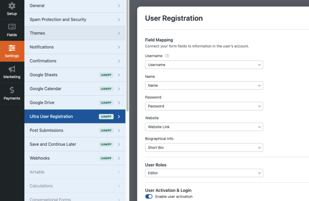 Simplify user sign-ups with the User Registrations Addon. This powerful tool allows frontend user registration with field mapping, user role assignments, activation and auto-login options, email notifications, and custom user meta support. A must-have for pro users.