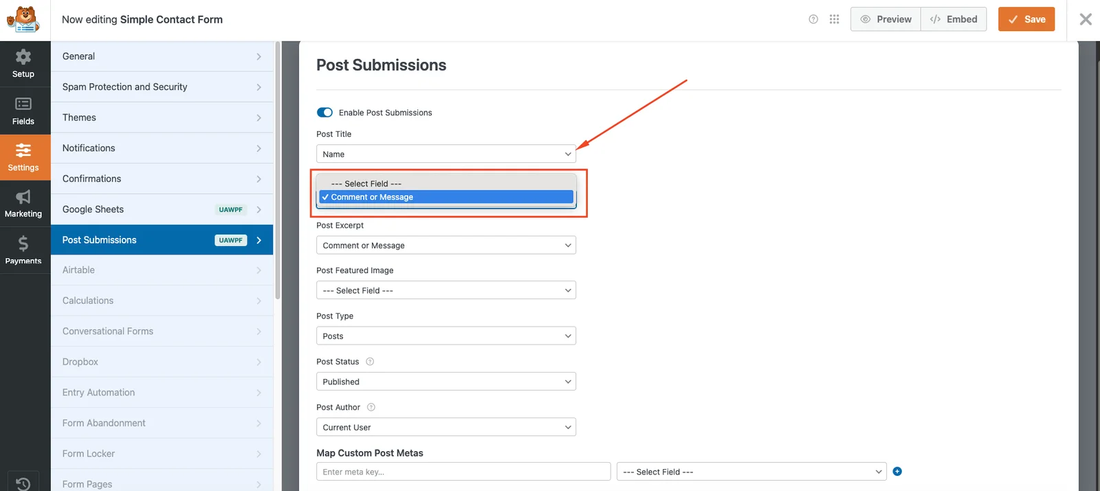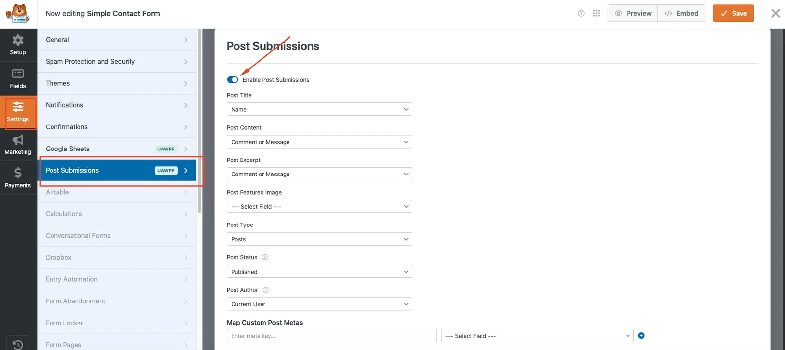 Post Submissions addon For WPForms