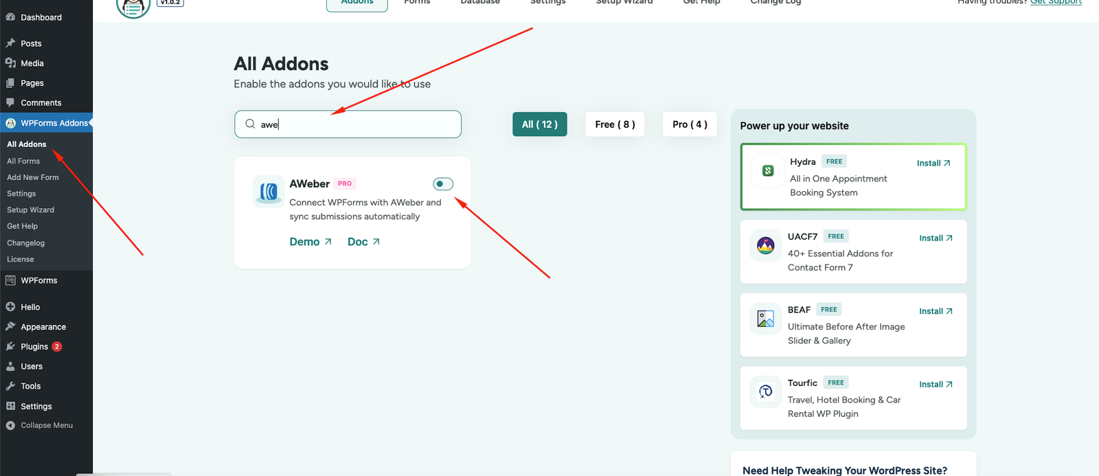 How do I connect WPForms to AWeber?