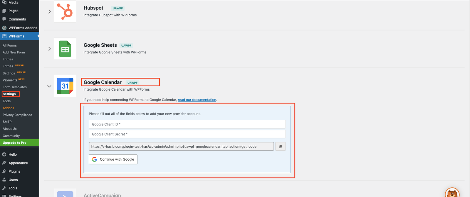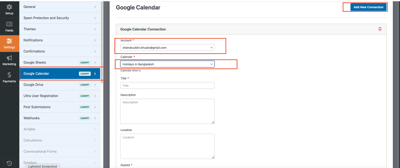 Explore the clean and intuitive backend interface of the Ultra Addons Google Calendar Integration for WPForms. Connect your Google Calendar, map form fields to event details, and customize scheduling settings—all in just a few clicks. Enjoy a smooth setup experience designed for speed, accuracy, and flexibility. Click the image to enlarge and see how effortlessly you can turn form submissions into calendar events.