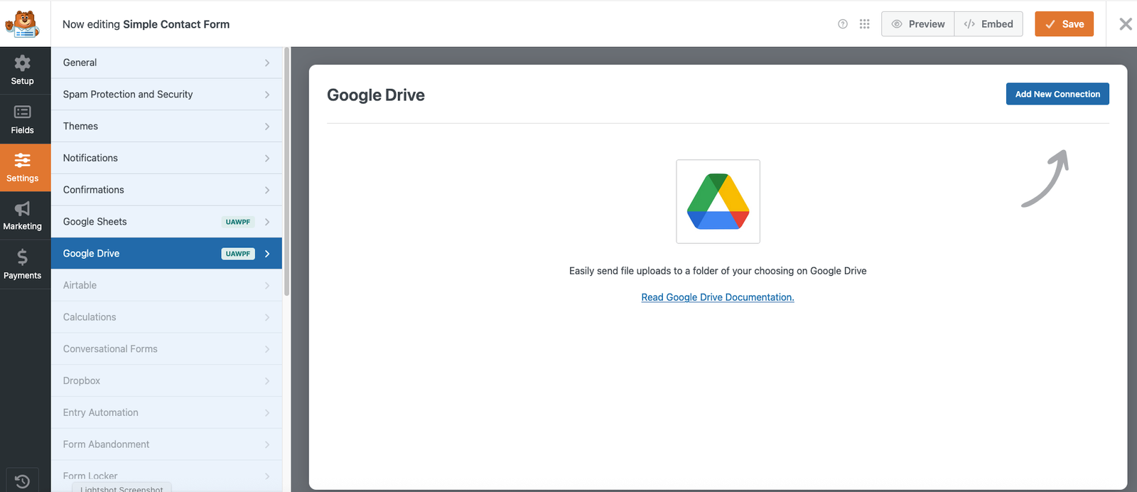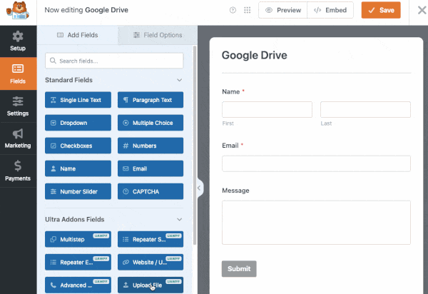 Explore the clean, intuitive backend interface of the Ultra Addons Google Drive Integration for WPForms. Connect your Drive account, choose your folders, and customize file-handling settings—all with just a few clicks. Enjoy a smooth setup experience designed for speed, accuracy, and flexibility. Click the image to enlarge and see how effortlessly you can automate and organize your file-management workflow.