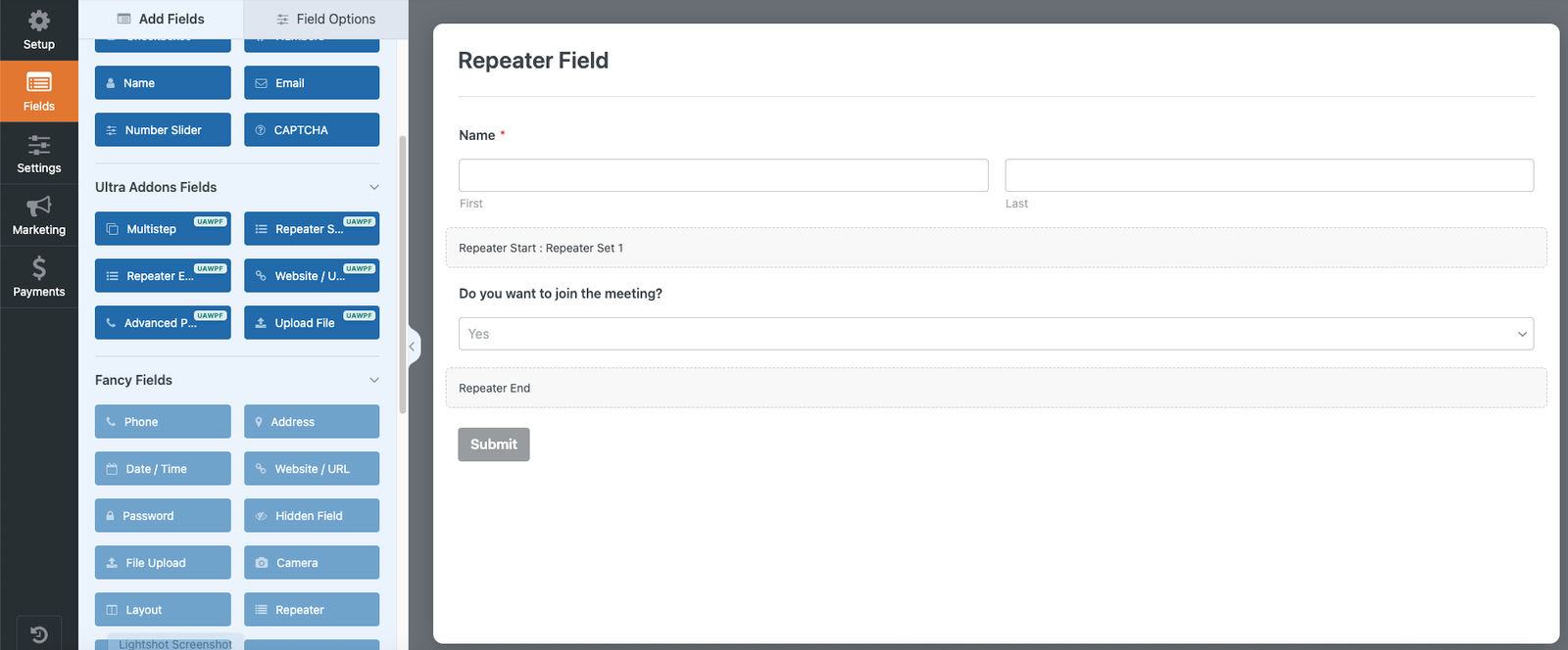 The Repeater Field Addon allows users to dynamically add or remove fields within a WPForms form. This feature is useful for multi-entry forms, such as team registrations, product orders, job applications, and more.