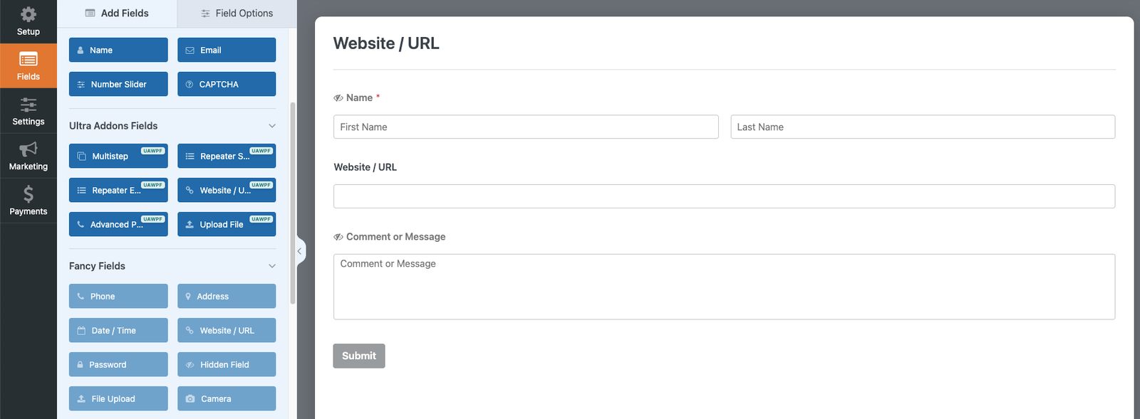 Take a closer look at how easy it is to manage and customize your Website/URL For WPForms. Click to enlarge the image and explore the intuitive controls that give you full flexibility over your form's design and structure.