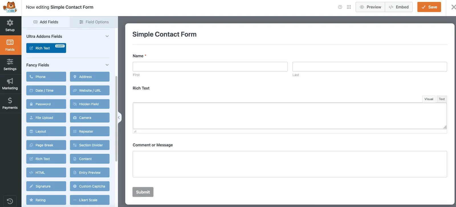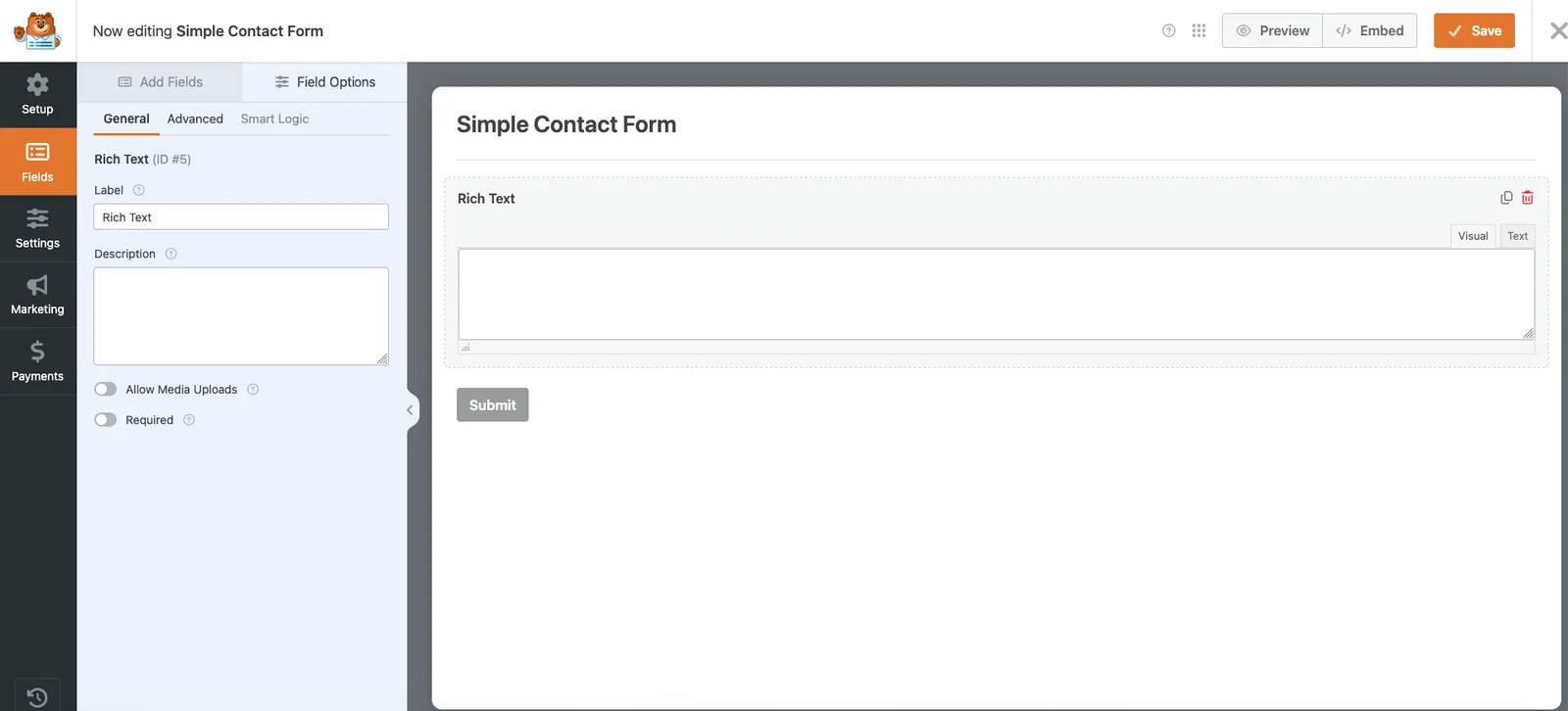 Rich Text Editor For WPForms